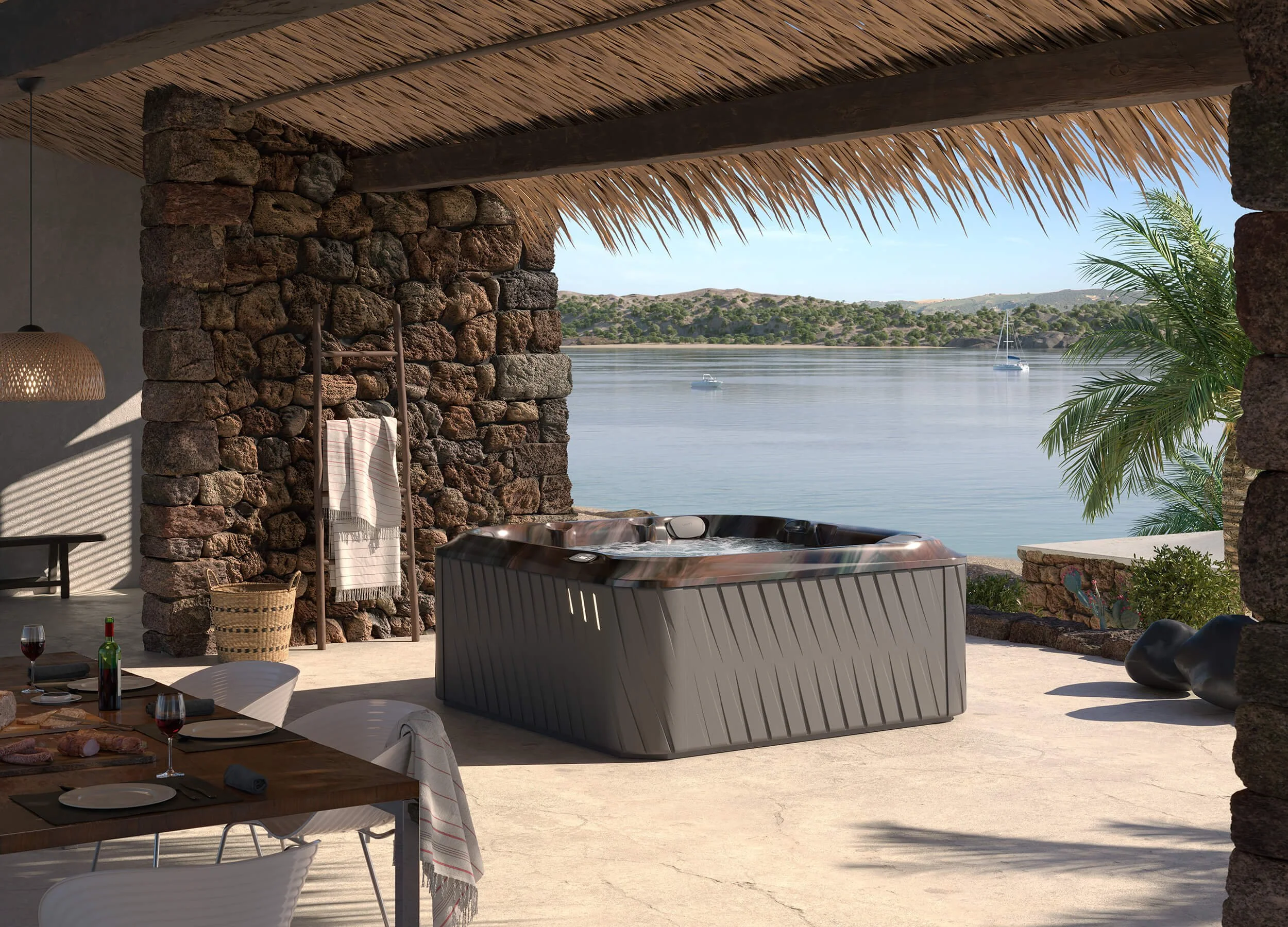Quality and value meld in the Jacuzzi®J-235™ model, built with superior materials and distinct Jacuzzi® design and features a 5-6 seats with full-size lounge seat for enjoyable hydromassage.